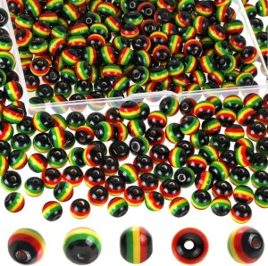 Back to shop BENOSPACE 100 Pcs Rasta Jamaica Beads, 8mm Black Red Green Yellow Striped Round Acrylic Spacer Beads for DIY Bracelet Necklace Jewelry Making